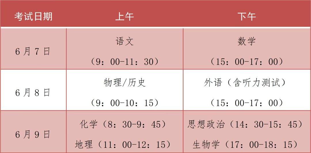6.开考前50分钟,考生可以进入考点。开考前30分钟,考生可以进入考场。开考15分钟后,迟到考生不得进入考点参加当次科目考试(6月8日下午外语科目14:45以后,禁止迟到考生进入考场)。