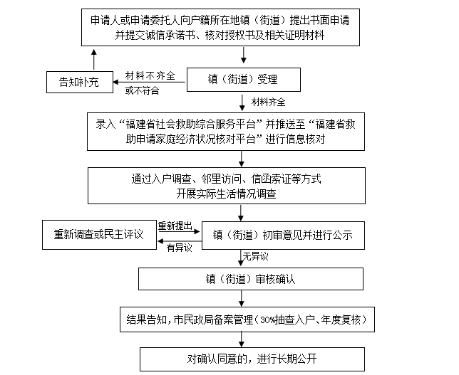 符合条件的申请人可以搜索微信小程序“晋力帮”,点击救助直通车模块自行申报或登录PC端“福建省网上办事大厅”在线填表申请、在线授权核对和上传佐证材料等;或者到镇(街道)便民窗口提出申请,并当场提交申请材料。申请有困难的,申请人可以委托包村(社区)干部、村(居)干部、社会工作者、志愿者或其他居民代为提出申请。委托申请的应当办理相应委托手续。