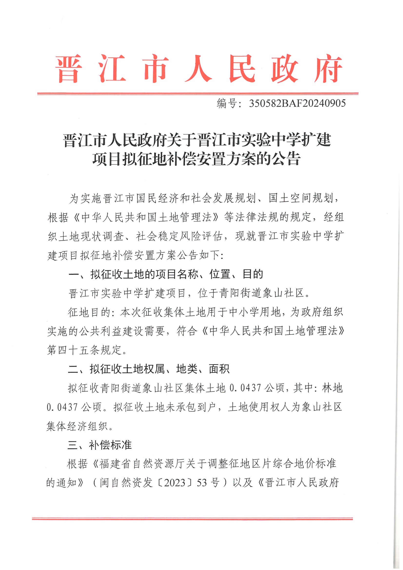麻豆做爱 关于晋江市实验中学扩建项目项目拟征地补偿安置方案的公告