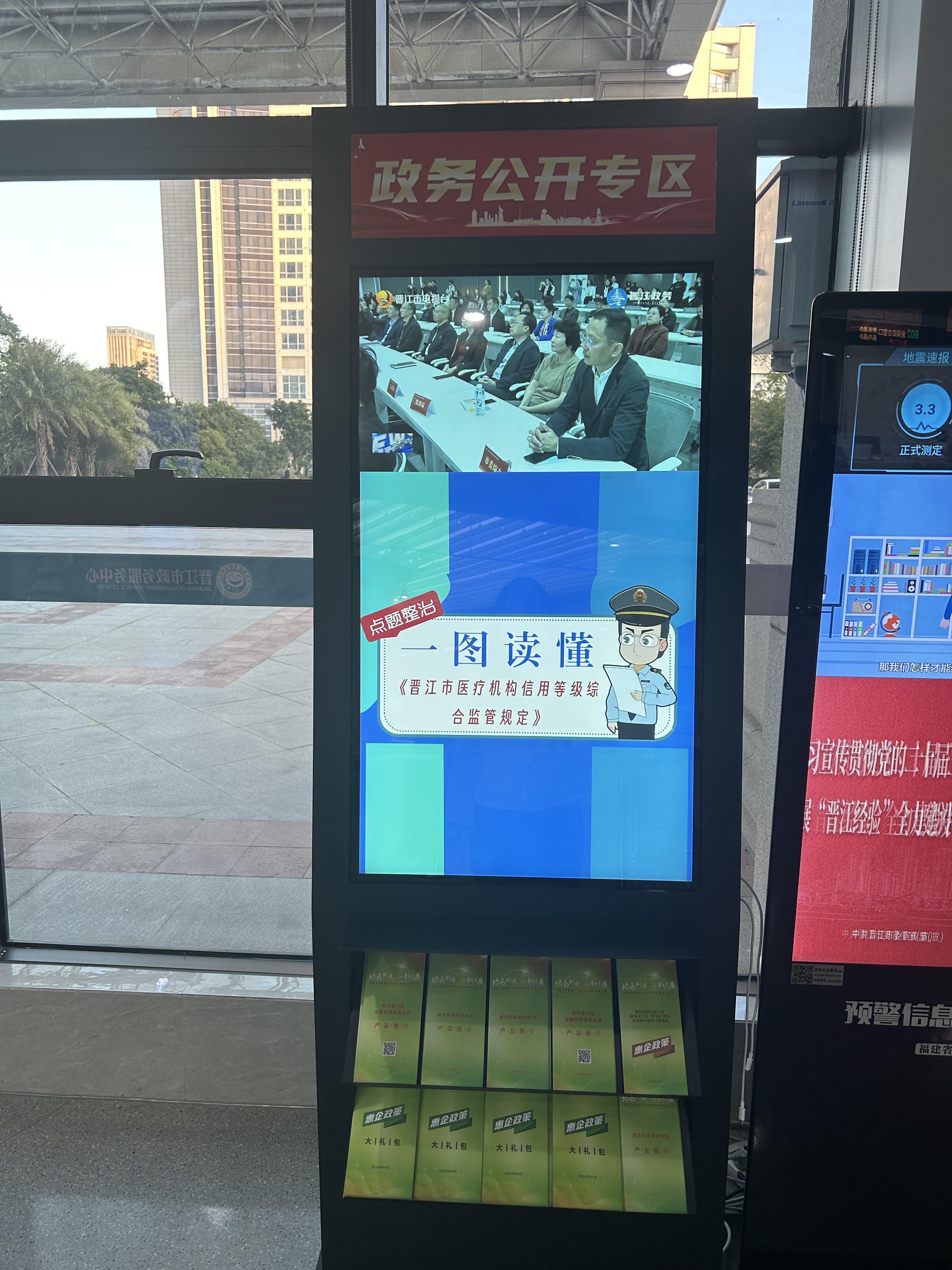 “晋江市政务公开专区”位于晋江市政务服务中心一楼大厅,是集政府信息查阅、政策解读查询、政府信息公开网络申请接收、服务咨询、自助办理及政务公开意见收集等功能为一体的线下政务公开场所。