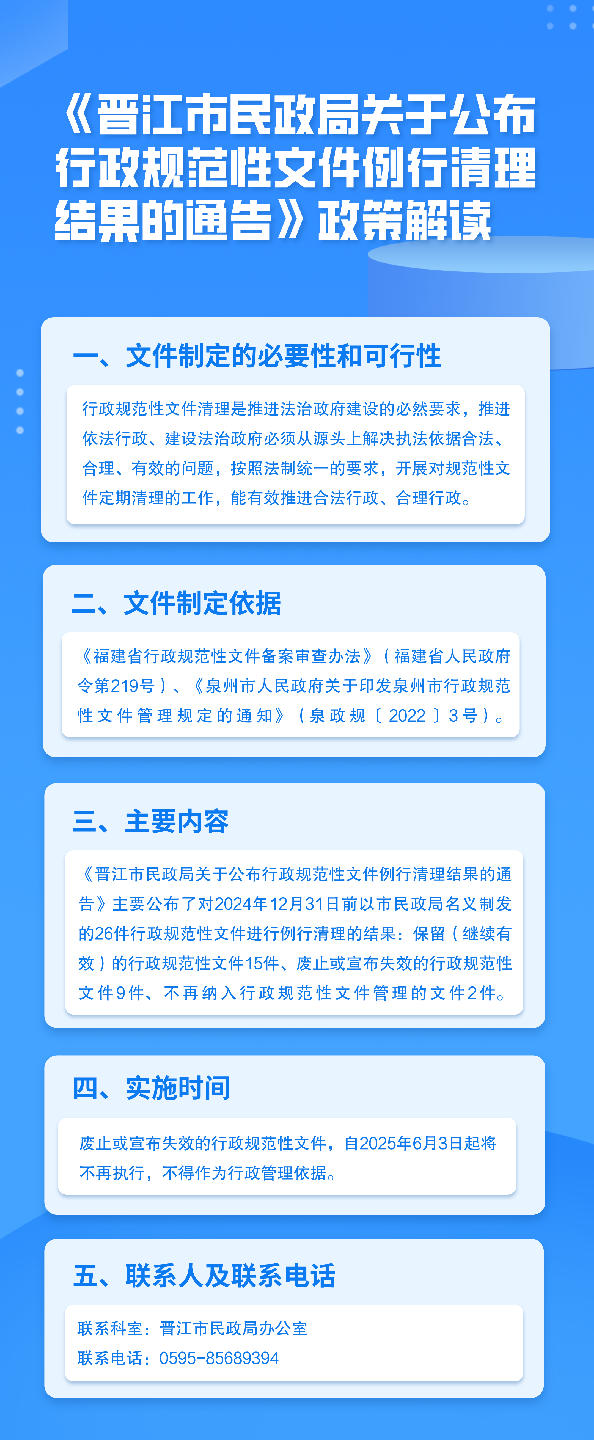 - 晋江市民政局关于公布行政规范性文件例行清理结果的通告2025-06-05