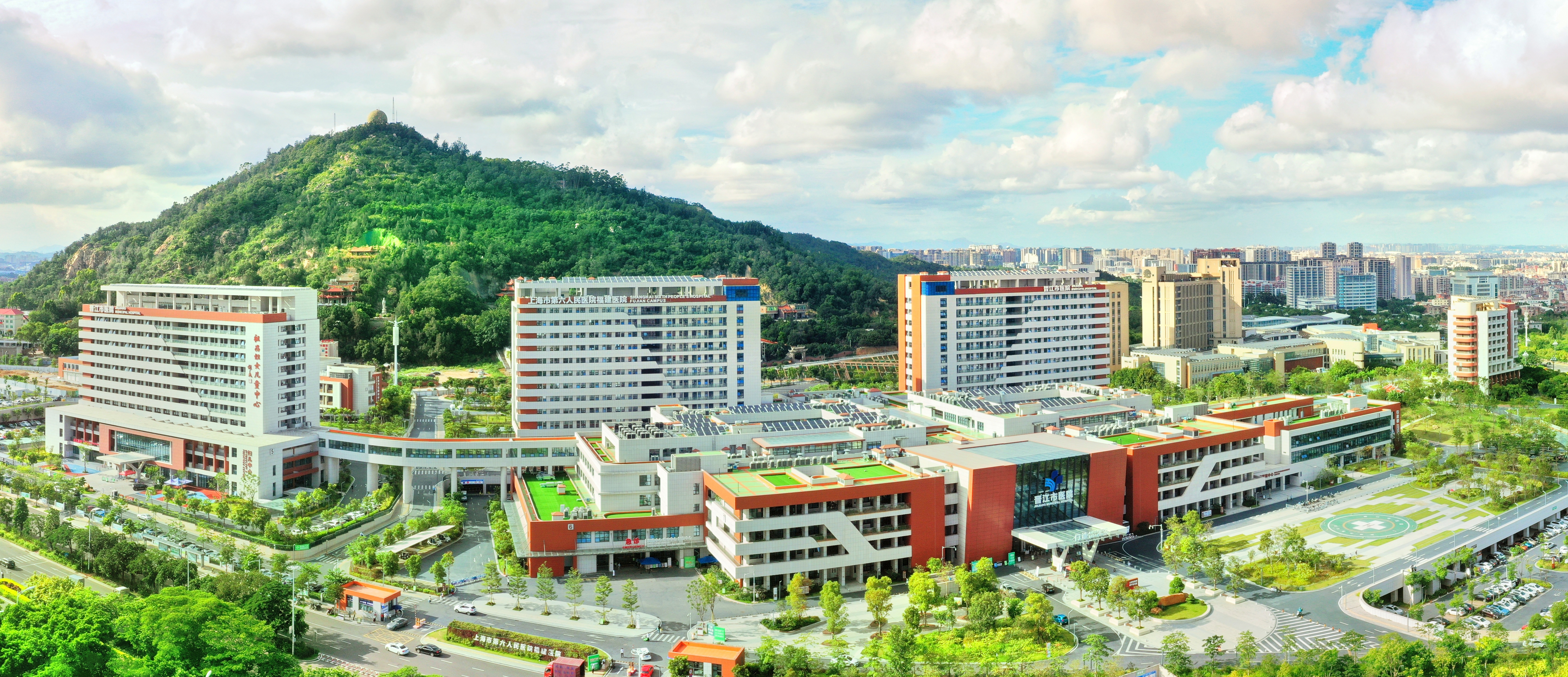 医院现有罗裳院区、爱国楼院区,在建新院区和敏院区。罗裳院区为总院区,用地面积303.2亩,总建筑面积20.3万平方米,建设床位1432张,于2021年1月投用。爱国楼院区总建筑面积5.84万平方米,用地面积50亩,目前与晋江市妇幼保健院、市中医院、市120急救指挥中心共用,功能定位为科创区域,设有实验动物中心。和敏院区2023年3月正式开工,由安踏集团和敏基金会捐赠20亿元建设,用地面积205亩,建筑面积24万平方米,建设床位1000张,拟于2026年上半年投用。