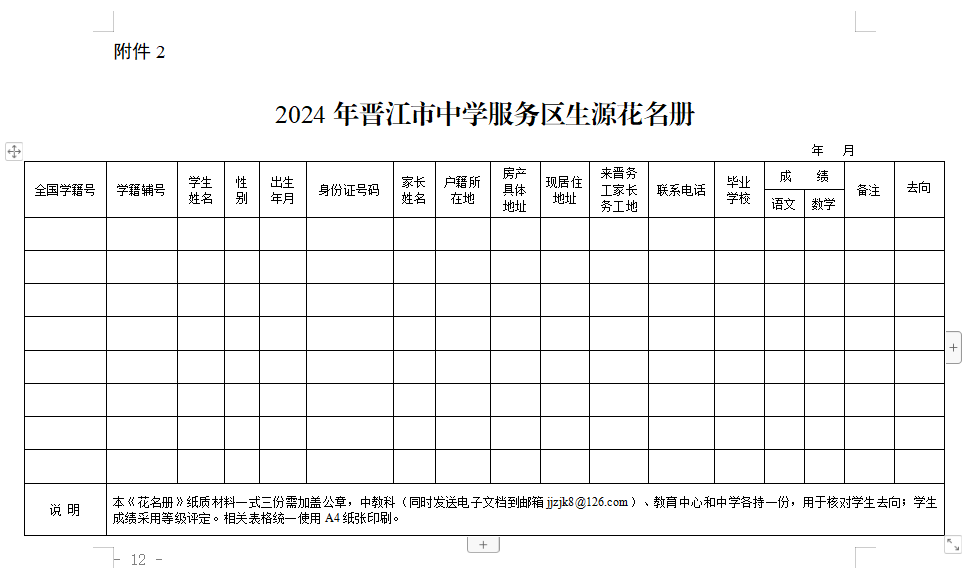 (三)《初招表》为我市范围内初中招生用表,来晋务工人员子女回原籍,由各小学提供学历证明和《小学生发展性评价报告册》,教育中心不向学生提供《初招表》;学生跨镇(街道)入学、来晋务工人员子女入学、民办校招生、在本市外镇(街道)就读的学生回户籍地入学,《初招表》由教育中心统一提供给相应单位,不分发给学生自带。