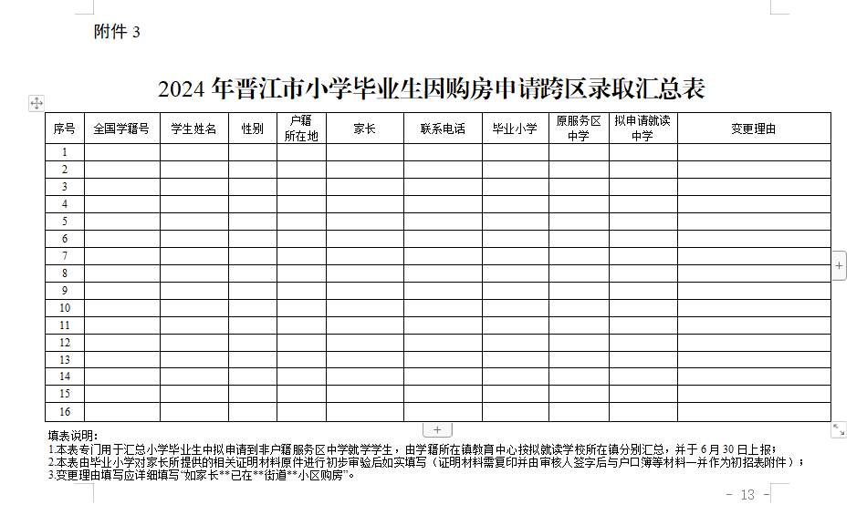 3.2024年晋江市小学毕业生因购房申请跨区录取汇